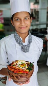 This dish is presented by IIHMCA Hyderabad Student Chef of the Indian Institute of Hotel Management and Culinary Arts (IIHMCA), Hyderabad, showcasing culinary skills in international cuisine preparation.