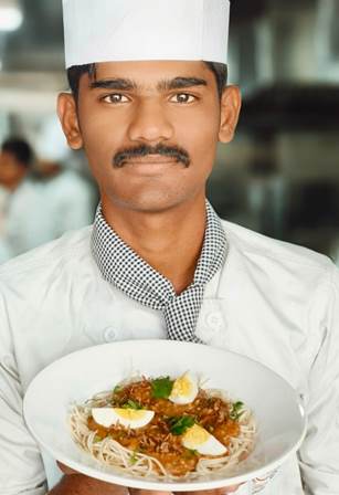 The student Mr. SAI TEJA of BCTCA 6TH sem is an exceptionally talented young chef, demonstrating a remarkable blend of creativity and technique in the culinary arts. His meticulous approach to cooking and deep understanding of flavours has earned him the prestigious title of Chef of the Day at IIHMCA.